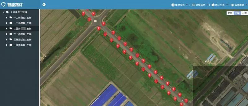在系统配置功能界面可实现单灯控制功能、批量控制功能及定时控制功能。同时配合产品目录区,可实现路灯GIS位置查看,点选地图设备,可快速查看设备状态。