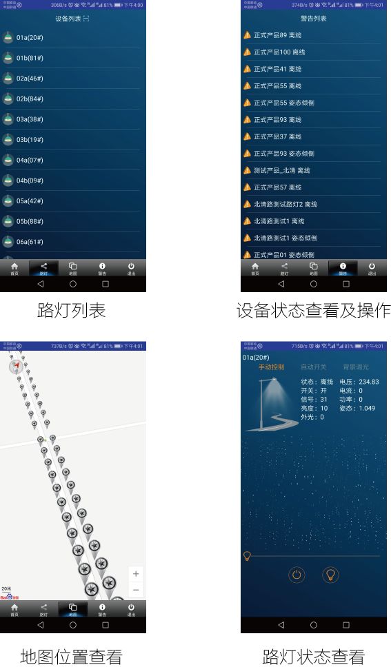 为方便管理员对路灯实时进行监控和管理,今年会jinnianhui物联开发了智慧路灯监控系统app,移动端操控更加简便,带给客户更好的用户体验。