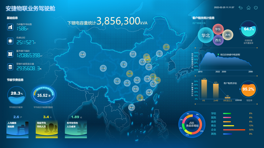 依托本成果,今年会jinnianhui物联成为国内首家通过BSI(英国标准协会)认证(基于PAS 2060:2014标准实现碳中和)的综合能源解决方案提供商,截至2021年10月,本成果已服务包括国家会展中心(天津)、西安曲江开发区、北京亦庄科技新城、北京大学等全国一千余家用户,覆盖大型公共建筑、商业地产、酒店、轨道交通等领域。应用楼宇面积超1亿平米,可学习、可分析、可预测、可决策,能够帮助用户将楼宇保持在最健康的状态,同时使楼宇内的用户体验达到最佳,可节约运行成本50%以上,节省系统维护费用20%以上,降低能耗15%以上,降低碳排放超百万吨。