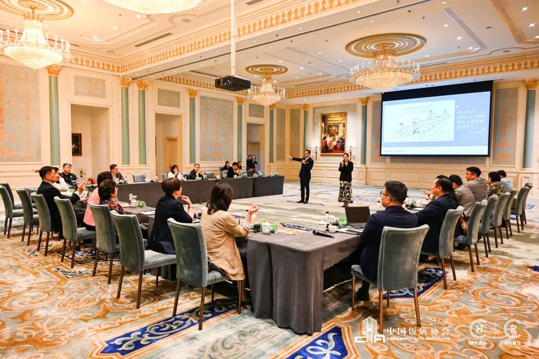 2023年6月5-6日,2023中国饭店协会绿色饭店专业委员会理事长工作会在天津丽思卡尔顿酒店顺利召开。中国饭店协会会长陈新华,资深会长韩明,资深副会长平安稳,副会长丁志刚,中国饭店协会副会长、中国饭店协会绿色饭店专业委员会理事长、天津天房酒店管理有限公司董事长刘军,中国饭店协会副会长、天津宝轩饮食集团有限公司董事长朱宝钧,中国饭店协会副会长、宁波石浦酒店管理发展有限公司总经理李惠飞及来自全国各地的中国饭店协会绿色饭店专业委员会副理事长参加本次会议。会议以“凝心聚力,绿色新格局”为主题,旨在搭建行业绿色发展平台,进一步提升中国饭店协会绿色饭店专业委员会的绿色服务能力,加强专委会成员间的交流合作。